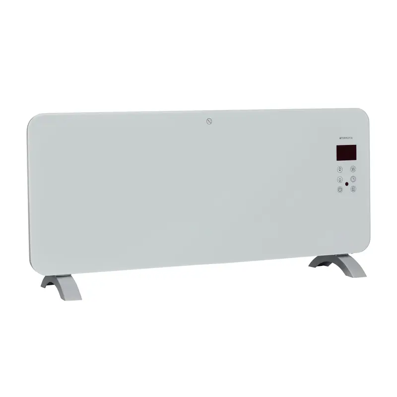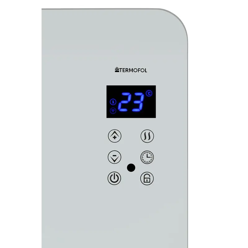 Універсальний пристрій із широким спектром використання та можливістю керування за допомогою смартфона з будь-якої точки світу. Це сучасний енергозберігаючий конвекційний обігрівач з можливістю монтажу на стіни або на ніжки. Пристроєм можна дистанційно керувати за допомогою телефону або планшета з системами Android або iOS. Сучасний алюмінієвий низькотемпературний обігрівач, виготовлений за найсучаснішою технологією X-Shape, гарантує швидкий обігрів приміщення. Передня панель виготовлена і з загартованого скла, обігрівач оснащений сенсорним цифровим терморегулятором з рідкокристалічним дисплеєм. Прилад має терморегулятор з можливістю зміни режиму потужності нагріву (100%/50%) і програмування тижневого розкладу.