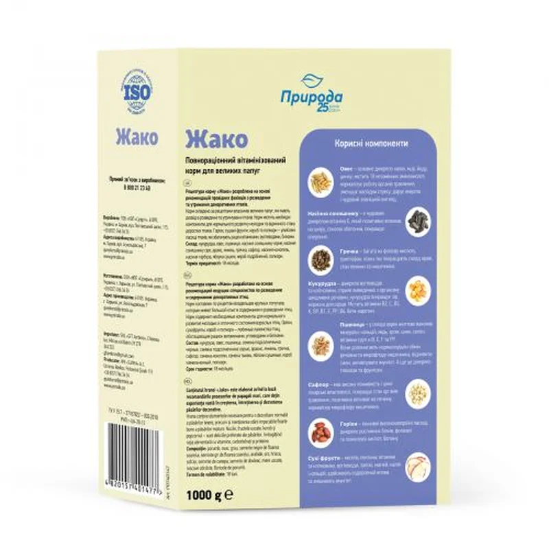 Рецептура корму «Жако» розроблена на основі рекомендацій провідних фахівців з розведення та утримання декоративних птахів. Корм складено за рецептами власників великих папуг, які мають великий досвід в розведенні та утримуванні птахів.