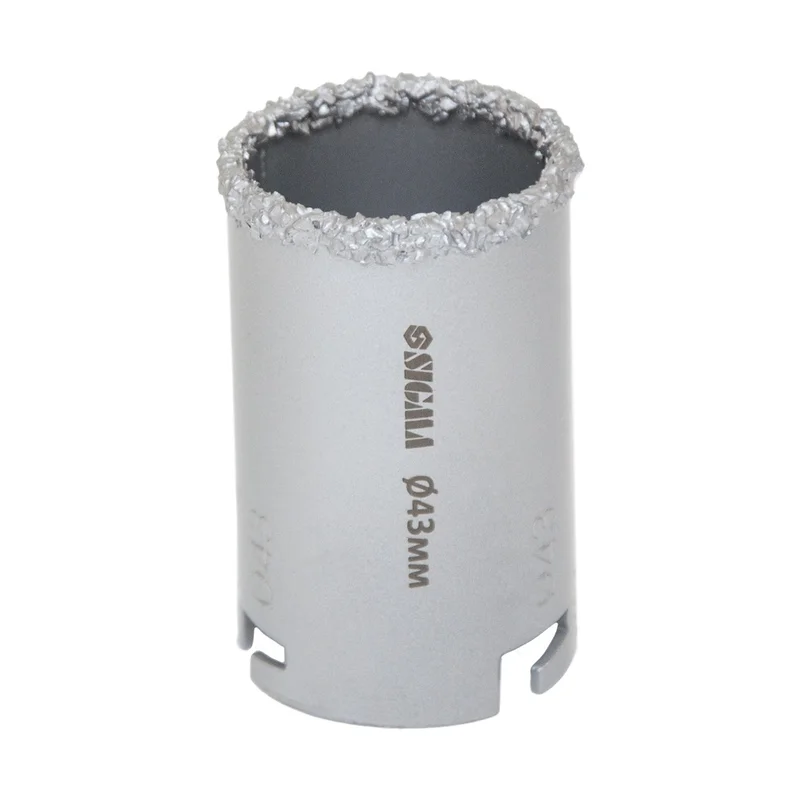 Коронка кільцева з вольфрамовим напиленням 43мм SIGMA (1512121) призначена для свердління отворів в бетоні, цеглі, кераміці, граніті, мармурі, плитці, пластику, пінобетон і гіпсокартон в безударном режимі. Застосовується в зборі з основою-державкою і центруючим свердлом.