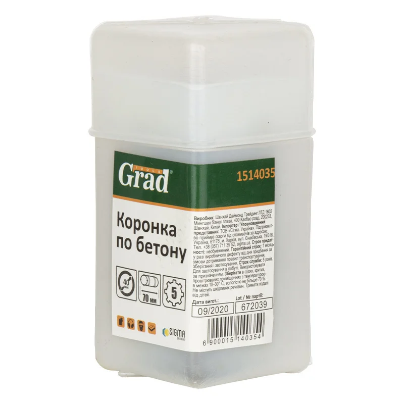 Коронка по бетону Ø40×70мм 5 зубців (тубус) GRAD (1514035)