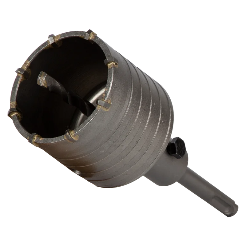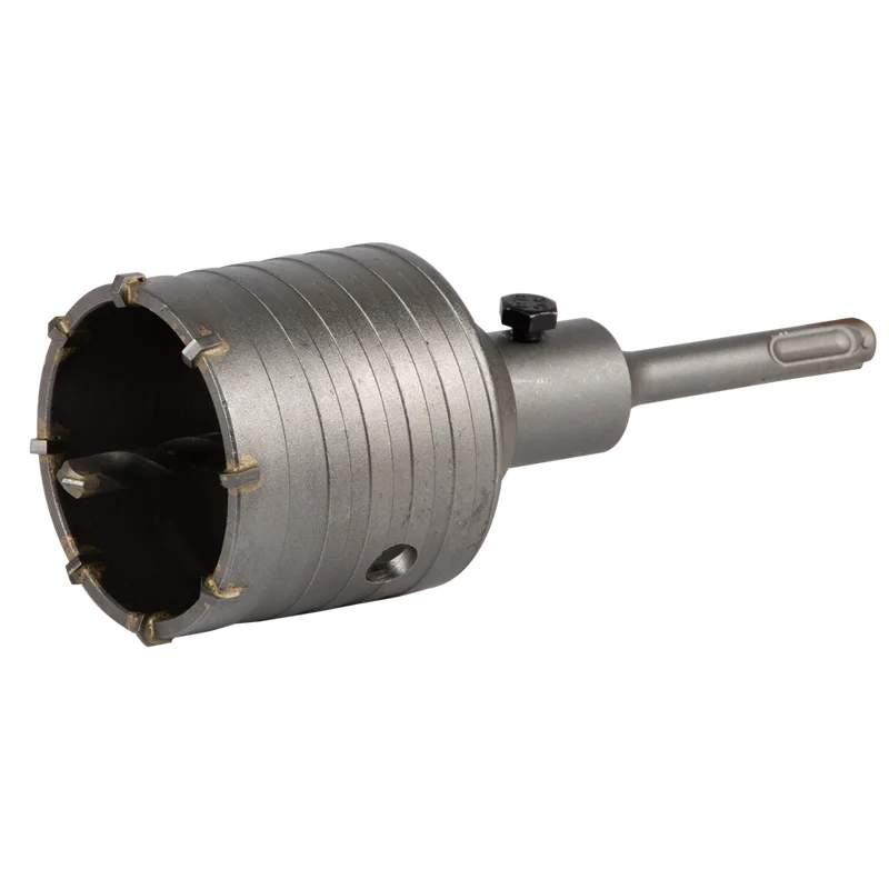 Коронка по бетону в зборі з хвостовиком SDS-plus та центруючим свердлом, що фіксується гвинтом. Призначена для ударного свердління отворів в бетоні, цеглі, камені, твердих вапняках. Використовують з дрилями і перфораторами потужністю не менше 850 Вт.