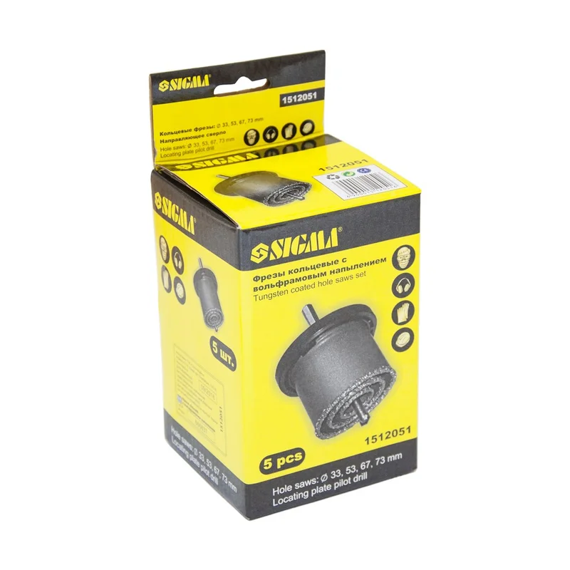 Коронки кільцеві з вольфрамовим напиленням Ø33, 53, 67, 73 мм + основа з свердлом SIGMA (1512051)