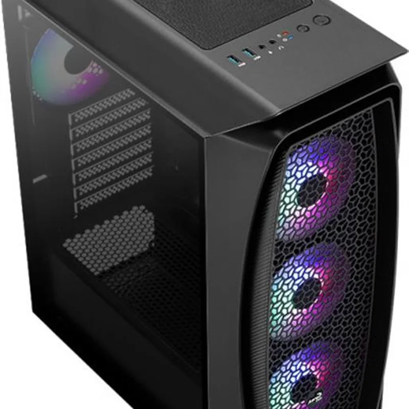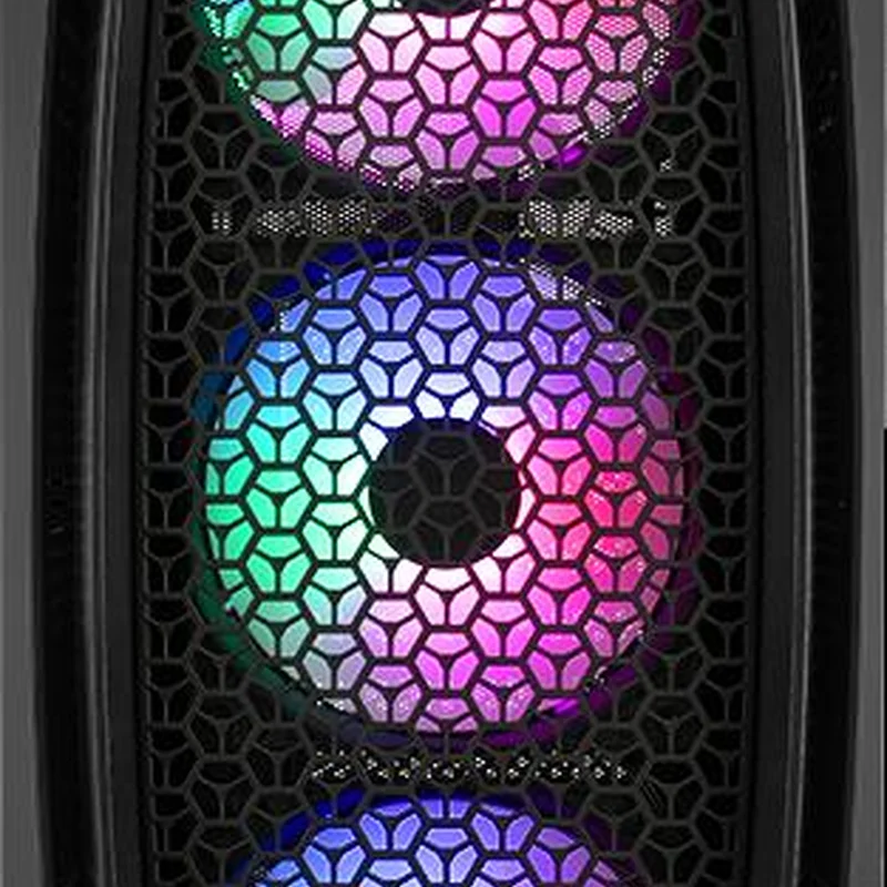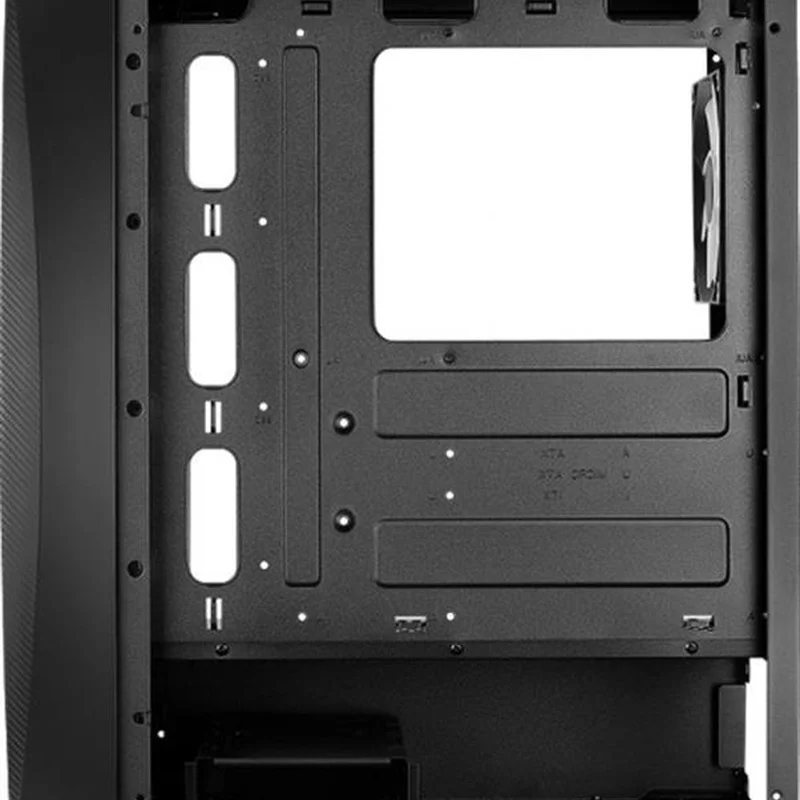 Бічна панель із загартованого скла дозволяє розглянути всі компоненти системи. Сітчастий дизайн передньої панелі покращує вентиляцію і демонструє передні вентилятори зі світлодіодним підсвічуванням.3 попередньо встановленних 120-мм FRGB-вентилятора на передній і 1 встановлений 120-мм FRGB-вентилятор на задній панелі корпусу. Підтримує рідинне охолодження в передній, верхній і задній частині корпусу, чим забезпечується більша ефективність відведення тепла.