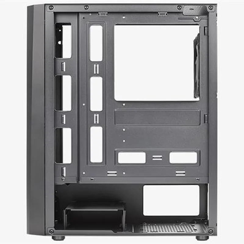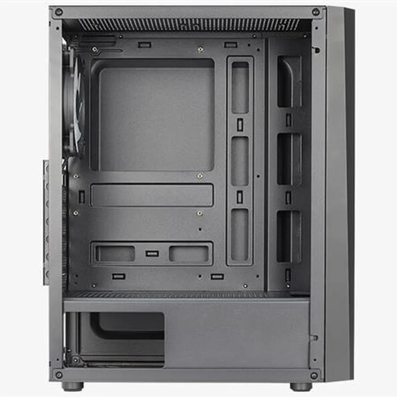 Корпус Mid Tower з унікальним дизайном передньої панелі RGB із вбудованими режимами підсвічування RGB. Вентиляційні отвори на передній панелі забезпечують посилений потік і циркуляцію повітря. Поставляється з боковою панеллю з повного акрилу або загартованого скла, щоб продемонструвати внутрішню частину вашої установки. Передня панель із вентиляційними отворами забезпечує чудовий потік повітря та вентиляцію Стильний дизайн передньої панелі RGB із вбудованими режимами освітлення RGB Поставляється з повністю акриловою або загартованою скляною панеллю для демонстрації внутрішньої частини вашої установки Кріплення вентиляторів на кожусі блоку живлення підтримують до двох 12-сантиметрових вентиляторів для покращеного охолодження VGA Підтримує рідинне охолодження в задній частині корпусу Підтримує повітряне охолодження в передній, верхній і задній частині корпусу Двокамерна конструкція для покращеної вентиляції Підтримує процесорний кулер до 155 мм Підтримує відеокарти високого класу до 307 мм (без переднього вентилятора)
