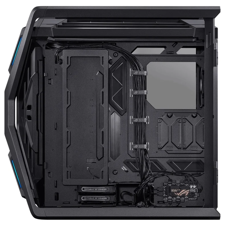 Комп’ютерний корпус ROG Hyperion GR701 E-ATX, підтримка подвійного радіатора 420 мм, чотири 140-мм вентилятори, металевий тримач GPU, сховище для компонентів, концентратор вентиляторів ARGB, швидка зарядка 60 Вт.
