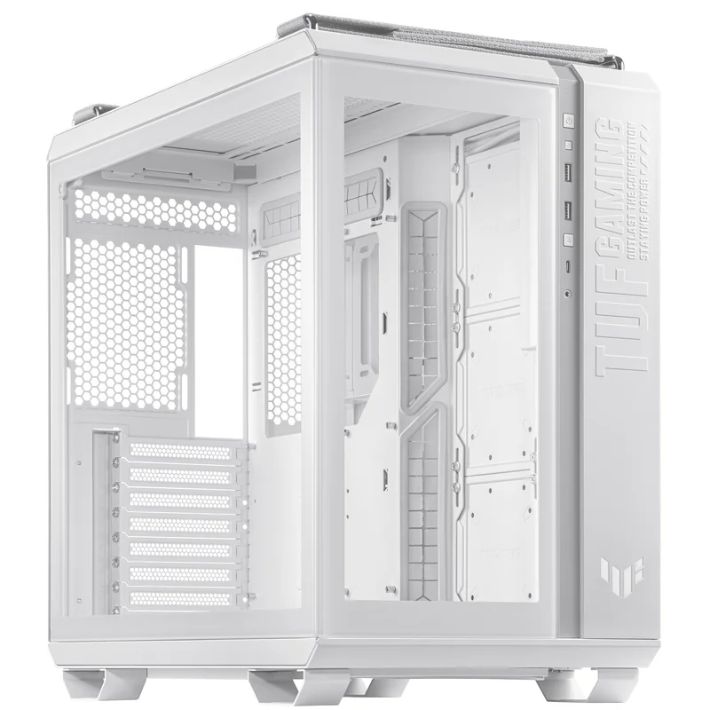 Двокамерне шасі TUF Gaming GT502 налаштовує незалежні зони охолодження для ЦП і ГП Панорамний вид Панелі із загартованого скла забезпечують тактовно тонований вигляд для демонстрації вашої конструкції? Високошвидкісний USB Type-C на передній панелі На передній панелі є порт USB 3.2 Gen 2 Type-C, який підтримує швидкість передачі даних до 10 Гбіт/с. Бічні панелі без інструментів Бічні панелі можна зняти, просто натиснувши кнопку, приховану на задній частині шасі