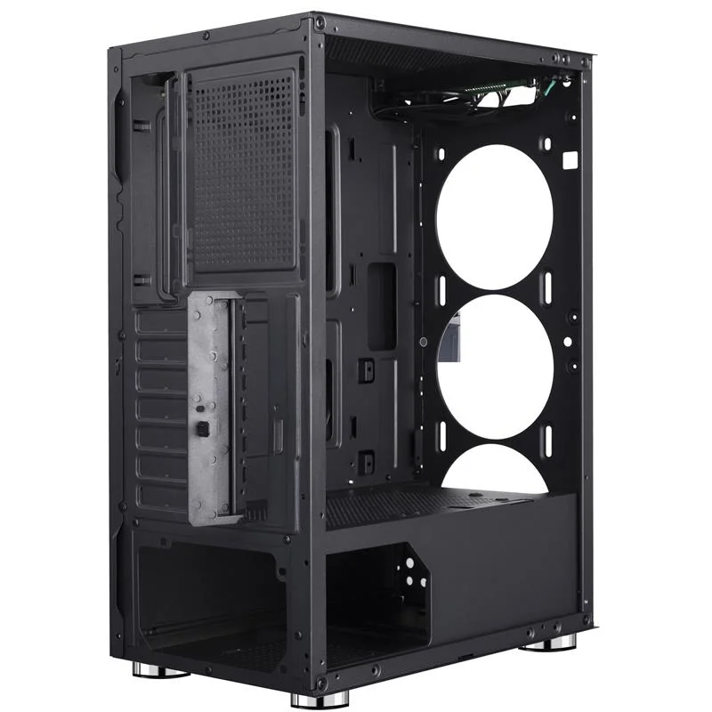 Frime Nucleus - це корпус для складання потужного ігрового комп’ютера. Відмінне охолодження забезпечують 3 комплектних LED вентилятора, розташовані за напівпрозорої передньою панеллю з оригінальними декоративними ґратчастими елементами, 1 вентилятор на задній панелі. Для кращої вентиляції передня панель обрамлена рамкою з прорізами, а верхня панель являє собою вентиляційну решітку. Ліва бічна панель також напівпрозора, завдяки чому відмінно проглядається внутрішня конфігурація, що дозволяє використовувати при її складанні сучасні комплектуючі з підсвічуванням. Корпус Frime Nucleus можна розміщувати нижче робочої поверхні, тому що всі найбільш затребувані роз’єми розташовуються на верхній панелі і доступ до них навіть з положення "сидячи" зручний. Однак при такому варіанті розміщення над корпусом має бути достатньо простору для природної вентиляції, адже верхня панель забезпечує додатковий доступ повітря, і для комфортного підключення пристроїв, наприклад, флеш-накопичувачів. Яскравий і стильний як в працюючому, так і у вимкненому стані, корпус Frime Nucleus здатний стати надійною основою комп’ютера вдома або в офісі.