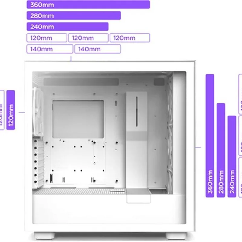 H7 Elite – це головний вибір для ентузіастів. Передня панель із загартованого скла демонструє три встановлені 140-мм вентилятори F Series RGB Core, вбудований RGB-контролер, розширені канали, гачки, ремінці, а також вхід без інструментів. Перфорована верхня панель Інтуїтивно зрозуміла система прокладання кабелів з широкими каналами, гачками та ремінцями Доступ без інструментів до передньої та бічних панелей (тоновані панелі тільки в чорному варіанті) до передньої та бічних панелей Передня та верхня панелі підтримують радіатори діаметром до 360 мм. Три передвстановлені 140-мм вентилятори F Series RGB Один встановлений 140-мм вентилятор F Series Quiet Airflow Підтримує вертикальну установку GPU (придбано окремо) Вбудований RGB та Fan Controller V2 w/ NZXT CAM Передня панель із загартованого скла