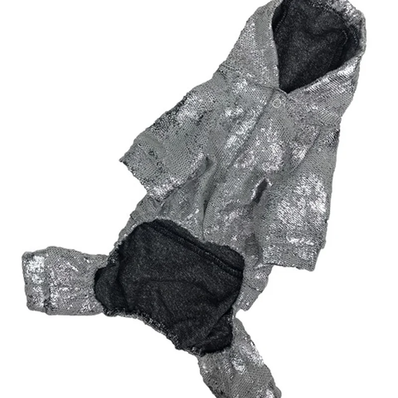 тканина трикотаж двунить щільна зверху тканина прикрашена срібним напиленням застібається кнопками на животі є капюшон є отвір для повідця на шиї модель унісекс