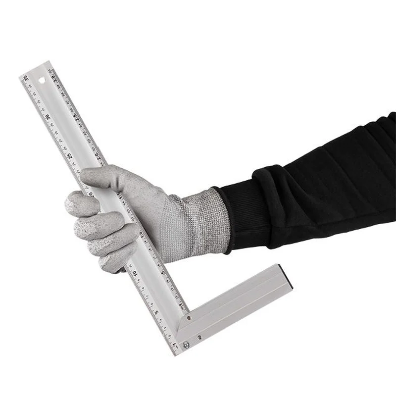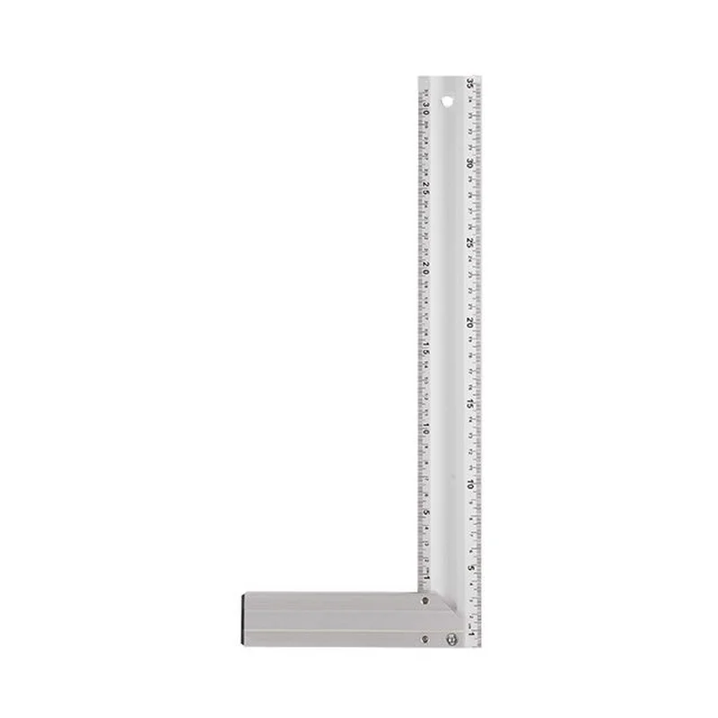 Двостороння метрична та дюймова розмітка з чітким маркуванням для зручної та точної роботи. Інструмент із прямим кутом 90° дозволяє точно вимірювати вертикальне відхилення внутрішніх та зовнішніх кутів, що забезпечує коректні дані вимірювань.