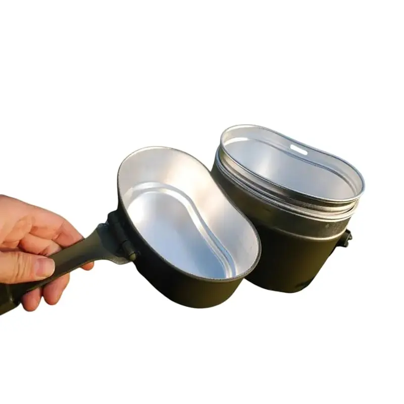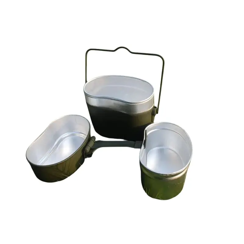 Котелок армейский походный алюминиевый (3 предмета, 162×95×H170 мм) Практичный и надежный армейский котелок — незаменимый элемент снаряжения для туристов, охотников, рыбаков и военнослужащих. Изготовлен из легкого, прочного алюминия, что обеспечивает быстрое нагревание пищи и легкость в транспортировке. Комплект состоит из трёх предметов: Основной котелок с ручкой (объем ~1,3 л) Крышка-сковорода с ручкой (может использоваться отдельно) Дополнительная внутренняя емкость (вставка), которая удобно делит содержимое или служит отдельной посудой Компактный размер (162×95×170 мм) позволяет легко размещать котелок в рюкзаке. Изделие удобно для приготовления и разогрева пищи в походных условиях. Скруглённые края, надежные крепления и складные ручки обеспечивают удобство в использовании и хранении. Преимущества: Малый вес и компактность Устойчив к коррозии Подходит для приготовления пищи на костре и горелке Легко моется Универсальность использования Отличный выбор для всех, кто ценит практичность и надежность в полевых условиях.