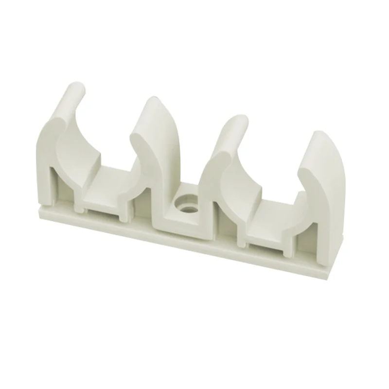 Подвійне кріплення PPR Blue Ocean 25 виготовлено з високоякісного поліпропілену в білому класичному кольорі, завдяки чому термостійкий та виглядає естетично. Саме тому його частіше застосовують під час монтажу водопроводу з гарячою і холодною водою. Кріплення складається з пласкої основи з отворами для шурупів і двох U-подібних скоб для фіксації на стіні труб діаметром 16 мм.