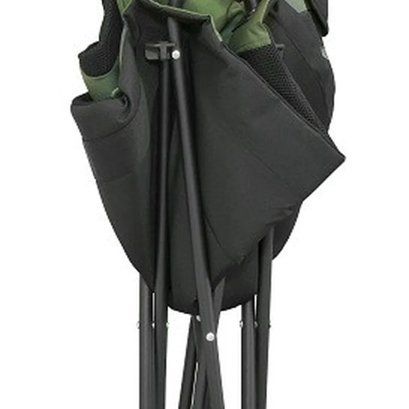 Якісний матеріал сидіння і надійна металева рама (діаметр каркаса 18 мм) гарантують необхідну міцність виробу. Оснащений спеціальним відділенням для пляшки, банки або іншої ємності з напоєм, маленькою сумкою для дрібних речей.