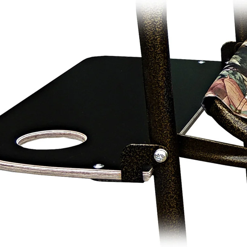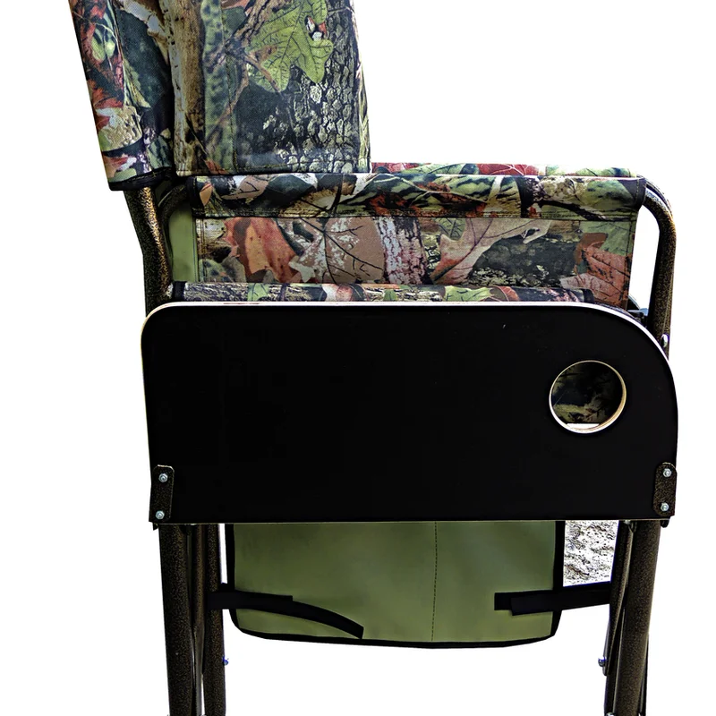 Окрім того, що виріб дуже легко складається та розкладається, крісло має стіл-поличку з отвором (підскляником), на якому можна зберігати пляшку з водою чи закуску, також є кишеня для дрібниць.