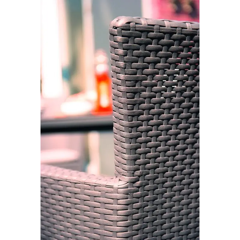 Крісло виконане з погодостійкого пластику, що імітує штучний ротанг, який не вигорає на сонці, не деформується і може зберігається на вулиці круглий рік. Чохол на подушці виготовлений з водовідштовхувальної тканини, таким чином крісло Iowa brown ідеально підходить для дачі, саду або заміського будинку, а так само може бути встановлено на балконі.