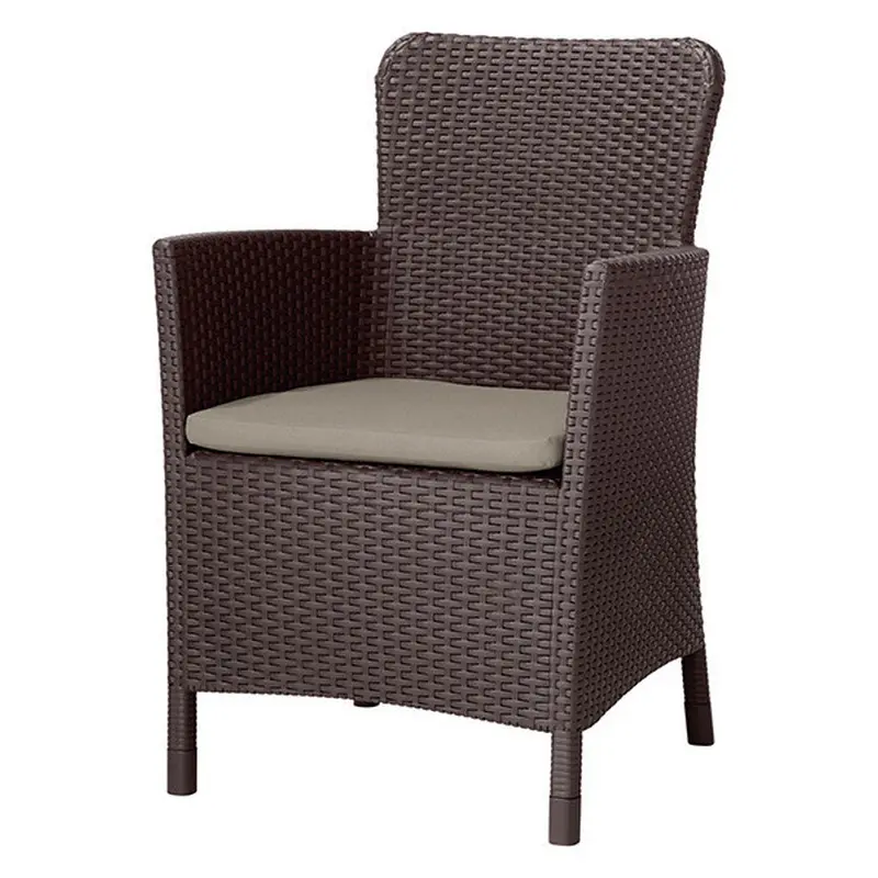 Miami - це зручне крісло із заокругленою спинкою, яке являє собою поєднання стилю та комфорту. Крісло чудово доповнить дизайн відкритого простору, а також гармонійно буде виглядати в стилі інтер'єру. Оригінальна ротангова фактура поверхні - особливість даної моделі, яка є безперечною перевагою між аналогами. Модель проста в догляді, міцна, стійка до впливу погодних умов і УФ-променів; виконана в класичних кольорах.