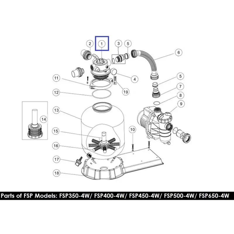 Кран чотириходовий Emaux MPV16 для фільтрів серії FSU і FSP390 з верхнім підключенням. Виготовлений з міцного і стійкого до УФ-випромінювання ABS. За допомогою клапана здійснюється регулювання і вибір режиму роботи фільтра (4 режими).