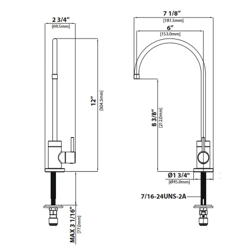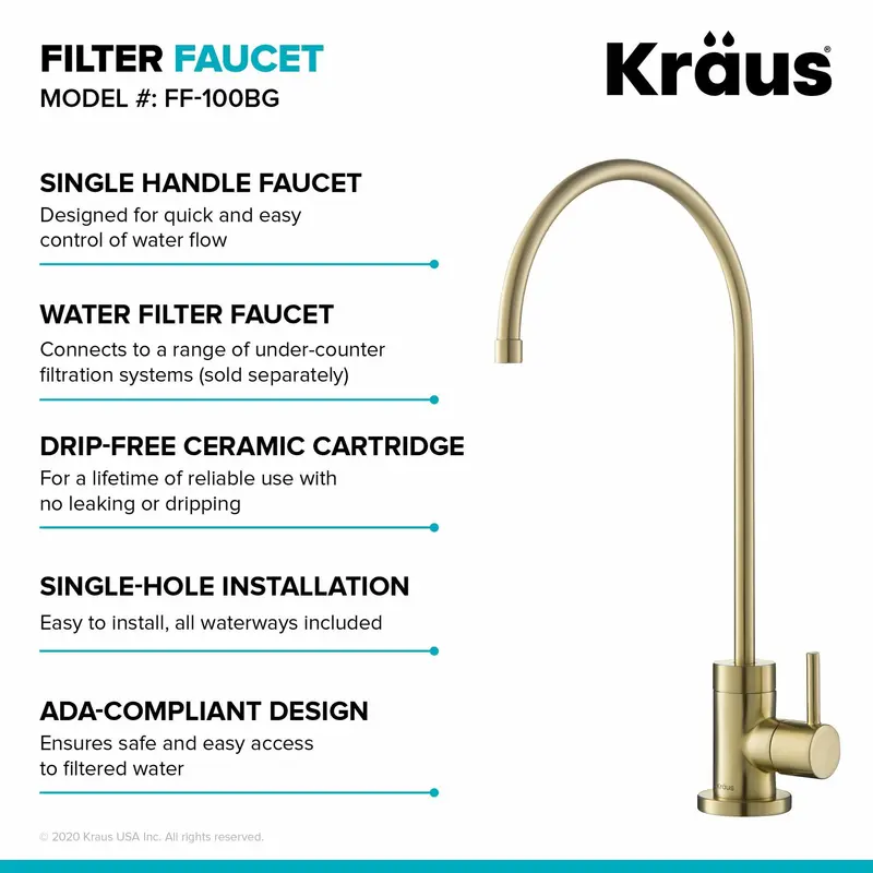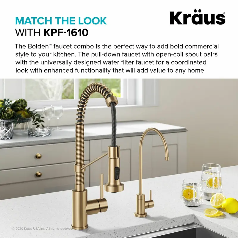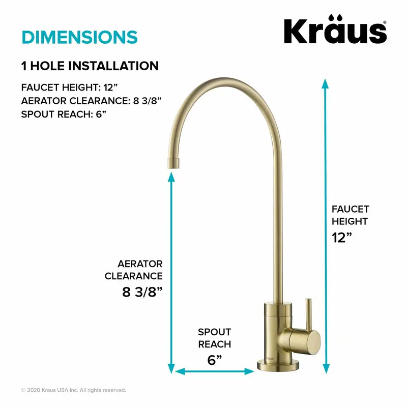 Вузький носик на стійці ідеально підходить для наповнення склянок, каструль і багаторазових пляшок з водою і повертається на 360° для повного доступу до раковини. Гарний як всередині, так і зовні, Purita виготовлений з твердої латуні для максимальної міцності, а водні канали з безсвинцевої латуні захищають фільтровану воду від контакту із забруднювачами. Універсальний дизайн доповнює будь-яку кухню і ідеально поєднується з будь-яким кухонним змішувачем Kraus, створюючи цілісний вигляд.