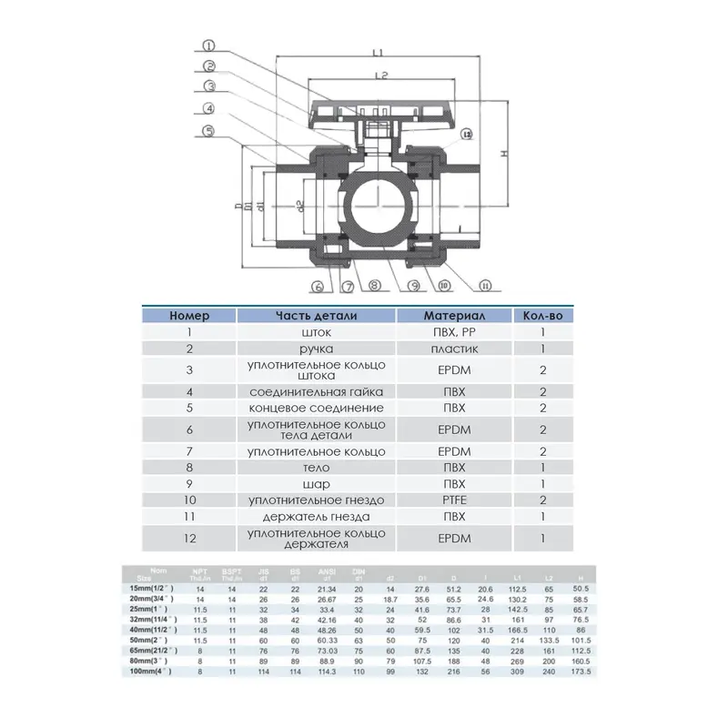 Кран кульовий для труб, в зборі. Клейове з’єднання. Виконаний з високоякісного PVC, EPDM та PTFE. Підвищена стійкість до хімії, корозії, УФ та окислення. В комплекті з ручкою перемикання.Ціна вказана за 1 одиницю.