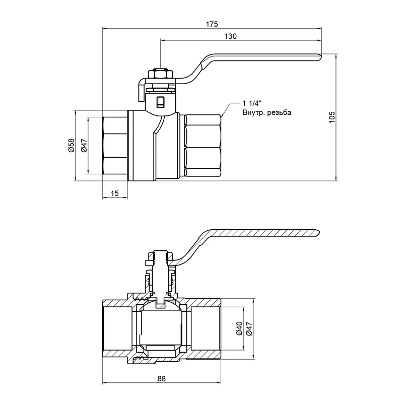 Кран кульовий SD Forte 1" 1/4 ВР для води (ручка) виконаний із латуні з нікельованим покриттям. Усередині крана встановлений запірний елемент — куля.