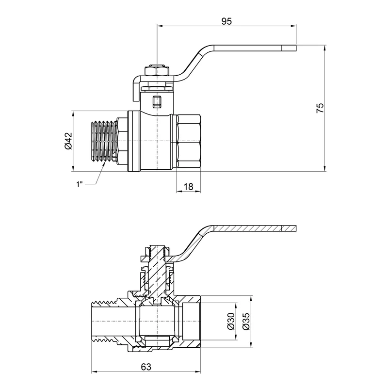 Кран кульовий SD Plus 1" ВЗ для води (важіль) SD605W25
