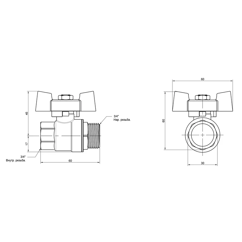 Кран кульовий SD Plus 3/4" ВЗ для води (метелик) SD607NW20PN40