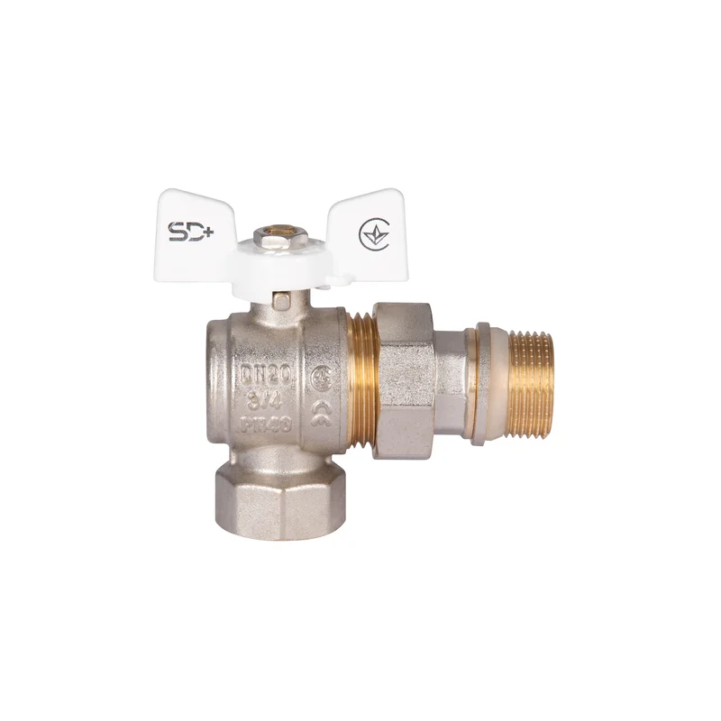 Кран кульовий з америк.(конус) антипротікання кутовий метелик латун. нікелір. 3/4"зв PN40 SD901NW20PN40 SD Plus