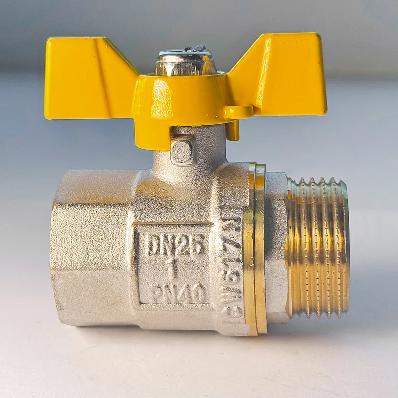 Кран кульовий для газу SANTAN 607, 1" зовнішній-внутрішній, жовтий метелик