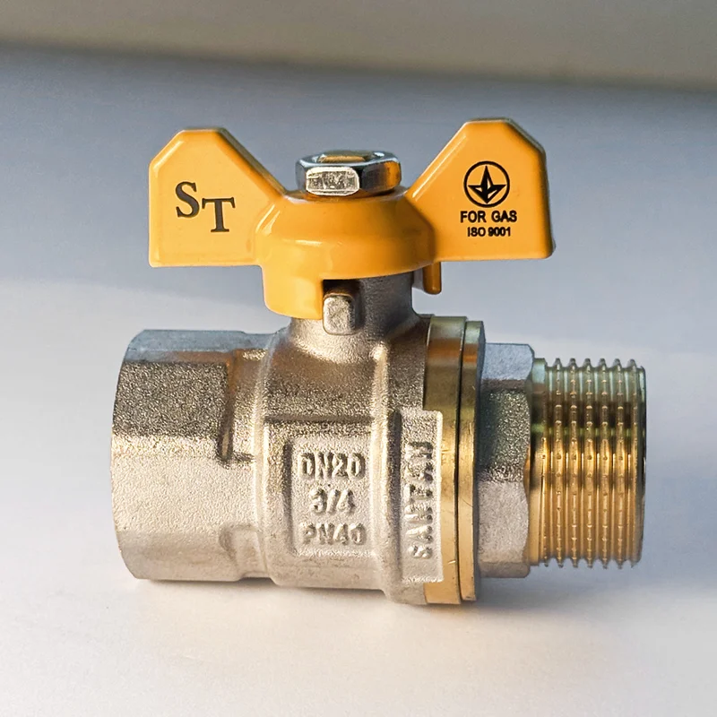 Кран кульовий для газу SANTAN Professional 607, 3/4 " зовнішній-внутрішній, жовтий метелик