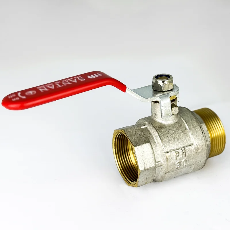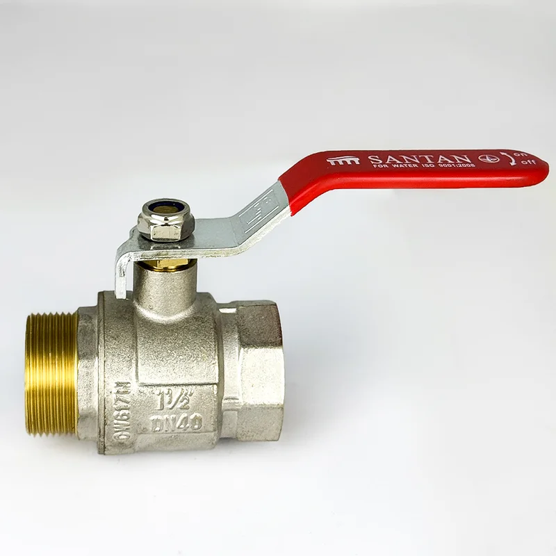 Кран кульовий для води SANTAN 605, 1 1/2" внутрішній-зовнішній, червона ручка