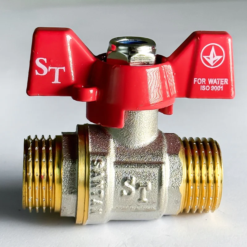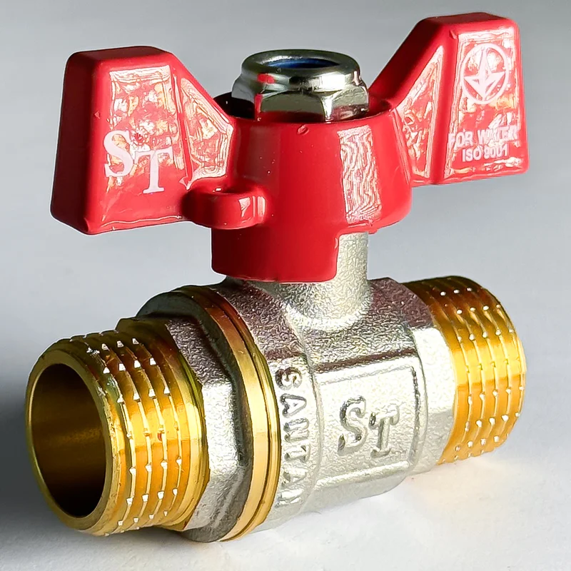 Кран кульовий для води SANTAN 607, 1/2 " зовнішній-зовнішній, червоний метелик