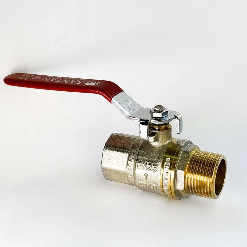 Кран кульовий для води SANTAN PREMIUM 605, 1" внутрішній-зовнішній, червона ручка
