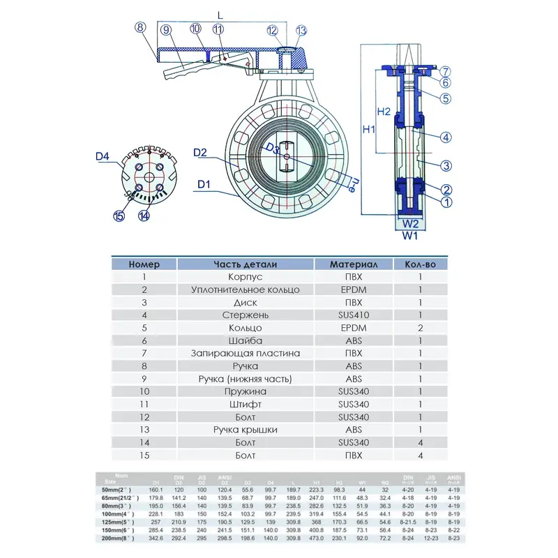 Кран метелик. Виконаний з високоякісного PVC. Підвищена стійкість до хімії, корозії, УФ і окислення. У комплекті з ручкою перемикання.Ціна вказана за одну одиницю.