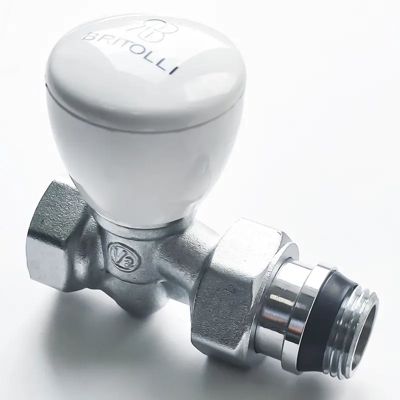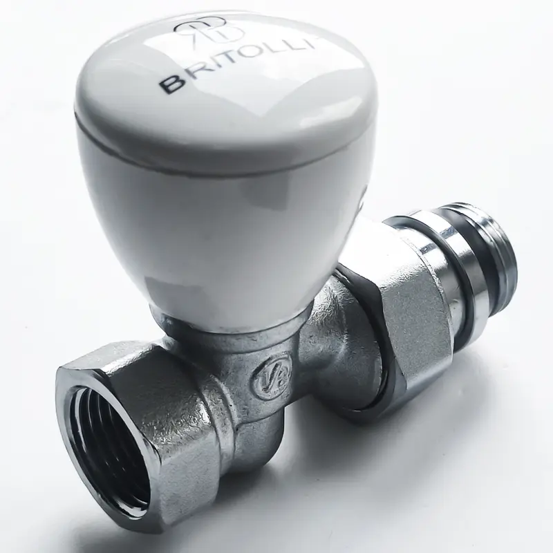 Кран радиаторный Britolli 1/2'', с накидной гайкой, прямой, вентиль, латунь никелированная