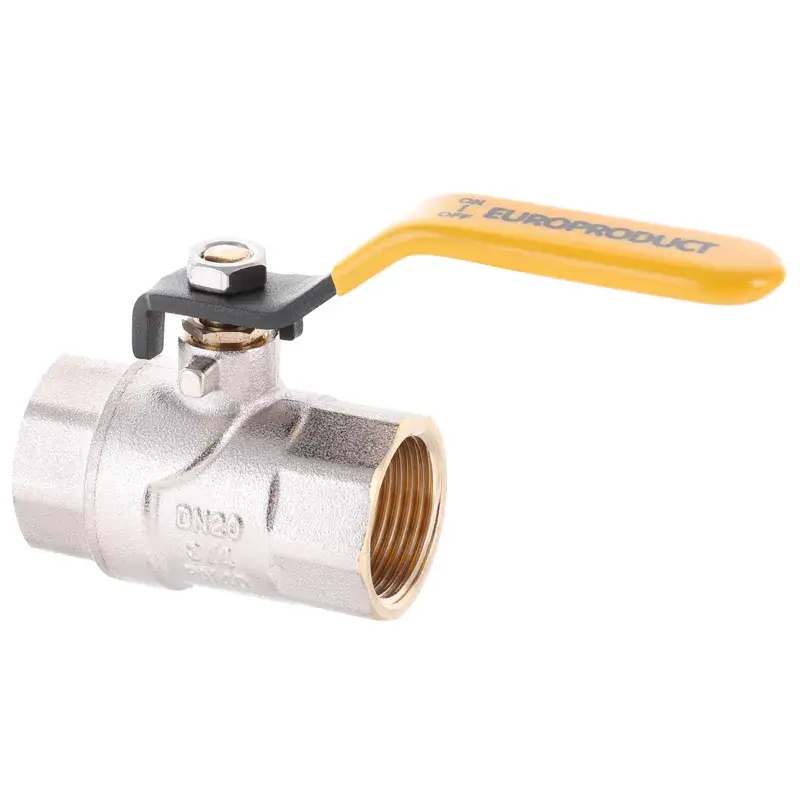 Кран шаровой Europroduct EP.221 - 3/4" FF ГГВ YELLOW, ручка "рычаг" желтая (EP2944)
