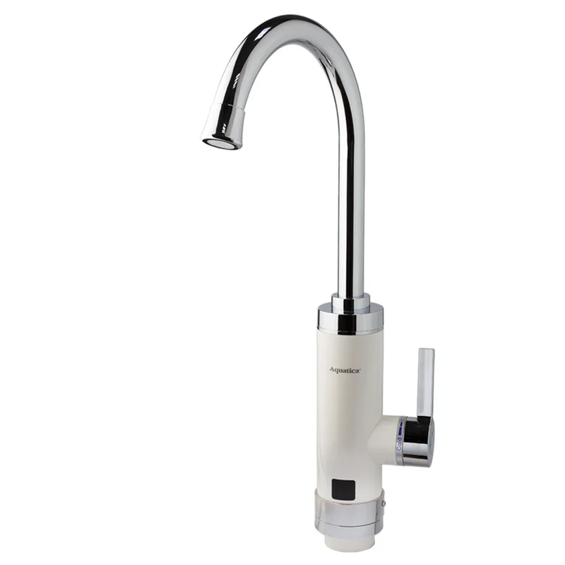 Кран-водонагрівач проточний HZ 3.0кВт 0.4-5бар для кухні гусак вухо на гайці (W) AQUATICA HZ-6B143W (9791113)