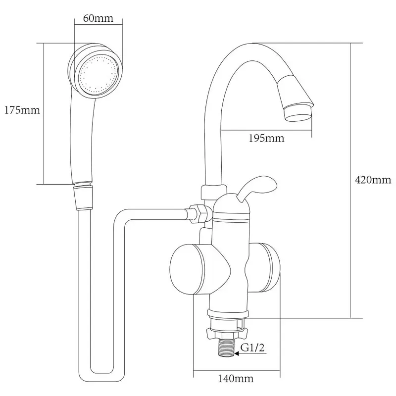 Кран-водонагрівач проточний LZ 3.0кВт 0.4-5бар для ванни гусак вухо на гайці AQUATICA LZ-6C111W (9795203)
