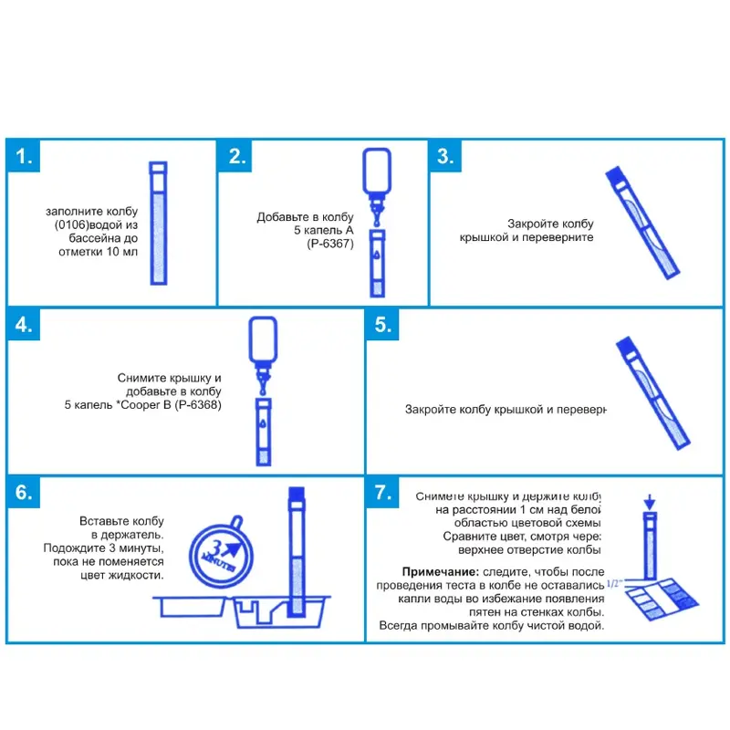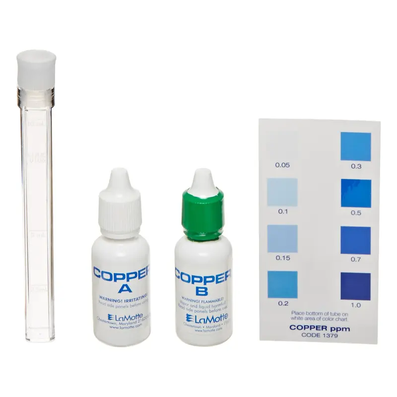 Краплинний тестер LaMotte EC-70 для визначення рівня міді у воді басейну. Використовується самостійно або з безхлорною системою знезараження E-Clear. Має зручну вимірювальну колбу для проведення тесту. Для визначення якості води використовуються реагенти