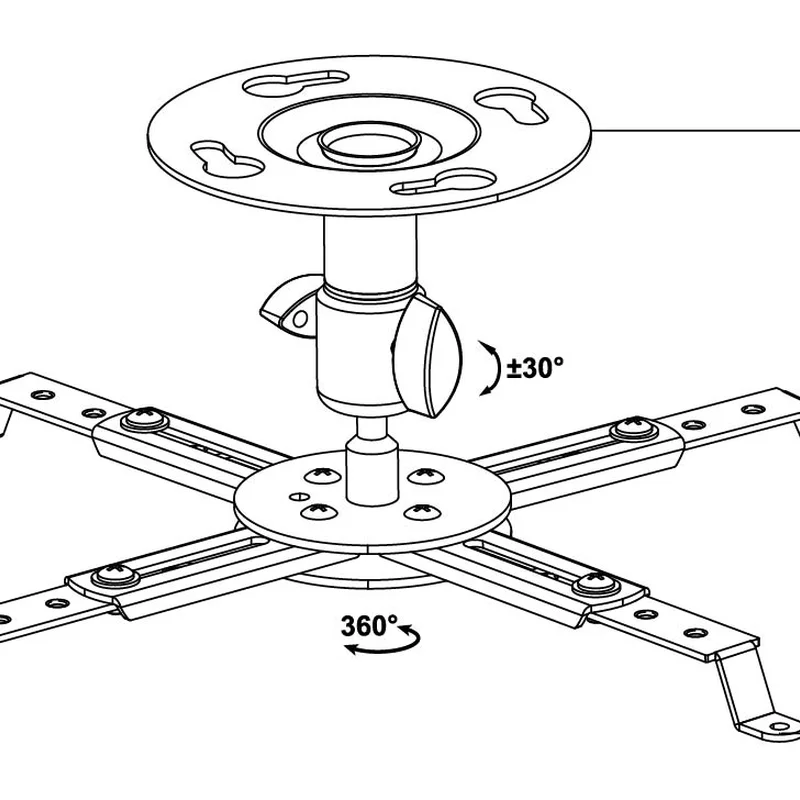 Стельове кріплення для проекторів. Ця модель витримує навантаження до 12 кг Приголомшливий дизайн і зручність конструкції дозволить насолоджуватися переглядом улюблених фільмів, при цьому зручно регулюючи кут нахилу і повороту. Кронштейн може обертатися на 360 градусів і нахилятися на 30 градусів.
