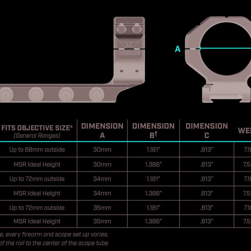 Моноблоки лінійки Skyline Precision Mount розроблялися інженерами компанії Warne з нуля спеціально для прихильників високоточної стрільби. Відфрезеровані з цільної заготовки алюмінієвого сплаву 7075 Т6. Виріб кріпиться на планку за допомогою двох упорів і чотирьох поперечних болтів, подібна конструкція істотно знижує вплив віддачі при пострілі. Суворі допуски за стандартом STANAG забезпечують прилягання до планки з мінімальним зазором, тим самим підвищуючи точність прицілювання і збереження середньої точки попадання - порівняно з аналогами, виконаними відповідно до Mil Spec 1913. Кріплення сумісне з планками Picatinny.