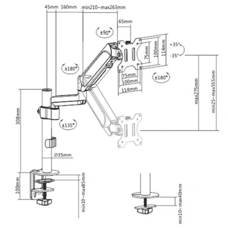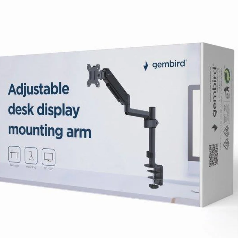 Особливості Настільний кронштейн для монітора з одним кріпленням Кронштейн обертається, висувається та втягується, нахиляється для зміни кута читання та дозволяє повертати дисплей з альбомного положення до портретного тощо Забезпечує просте ергономічне позиціонування для зниження навантаження Працює практично з будь-яким РК-монітором (макс. 32 дюйми) Міцна регульована газова пружина підходить для моніторів вагою від 1 до 9 кг Вбудована система кабельменеджменту для організованого та акуратного робочого простору Міцний затискач для легкої та надійної фіксації на столі Знімна пластина VESA полегшує встановлення Сумісність з VESA (100 x 100 мм та 75 x 75 мм)