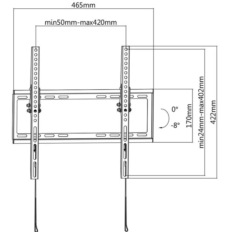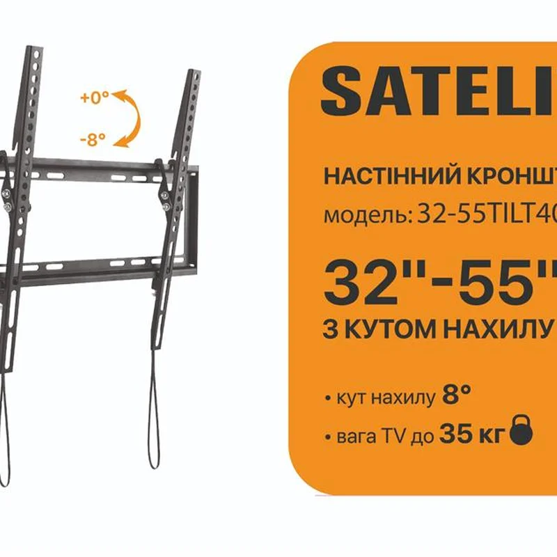 Кронштейн із кутом нахилу SATELIT 32-55TILT400 завдяки своїй конструкції, забезпечує максимальний комфорт при перегляді контенту дозволяючи змінювати кут нахилу екрану до 8°. Кріплення VESA min 200x200, max 400x400 забезпечує надійну фіксацію телевізора. Дане кріплення призначене для настінної установки телевізорів або моніторів з розмірами екранів від 32" до 55" і вагою до 35кг. Купуючи телевізор, багато хто вибирає діагональ своєї мрії і максимально комфортний гаджет для користування. Часто, розміри приміщення або дизайн інтер’єру не дозволяє розмістити телевізор на стандартній підставці і вже тим більше, розташувати тумбу під екран. У таких випадках, найкращим рішенням стане кронштейн. Він вирішує не тільки проблему економії простору, але і дозволяє розмістити екран в зручній точці квартири, на будь-якій відстані і висоті. Кріплення SATELIT 32-55TILT400 являє собою опорну контсрукцію, яка надійно кріпиться до стіни для фіксації телевізора. Конструкція кронштейна із кутом нахилу SATELIT 32-55TILT400 дозволяє глядачеві, змінювати положення ТВ з кутом нахилу в 8° у напрямку вгору-вниз. Це особливо зручно і важливо, якщо панель розташована вище очей і для комфортного перегляду контенту необхідно адаптувати положення екрану. Кронштейн SATELIT 32-55TILT400 одразу укомплектований усіма необхідними деталями: дюбелями, анкерами та кріпильними гвинтами і інструкцією для простої і надійної установки. Виробник подбав про максимальну зручність.