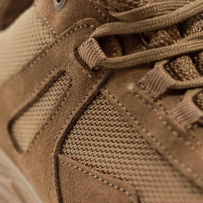 Встречайте еще одну модель в цвете Coyote - тактические кроссовки ML 030-023, удачно объединили в себе качества как военного, так и спортивной обуви, поэтому прекрасно смотрятся с повседневной и спортивной одеждой или с военной формой. Верх кроссовок выполнен из натуральной итальянской кожи (толщина до 2.0 мм, водоупорность не менее 180 мин., Прочность кожи на разрыв не менее 120 Н, ДСТУ ISO 20345) и прочного, устойчивого к пыли и грязи полиамидного водоотталкивающего материала "Cordura 6.6" с высокой износостойкостью, что делает кроссовки одновременно дышащими и прочными. Носок и пятка усилены итальянской кожей, прорезиненной по специальной технологии. Все места кроссовок, испытывающих основную нагрузку прошиты двумя строчками для обеспечения дополнительной прочности. Гибкая ТЕП подошва является оптимальным соотношением веса и износостойкости, вкладная стелька и мягкая подкладка создают комфорт для ног во время ходьбы и бега. При производстве используется вакуумно-термический метод крепления подошвы, что предоставляет дополнительную защиту от попадания влаги внутрь кроссовка. Система шнуровки состоит из мягких полиамидных петель с водоотталкивающей пропиткой и металлических, антикоррозийных блочек, что обеспечивает быстроту шнуровки и позволяет прочно зафиксировать кроссовок на ноге, специальное плетение полиамидных шнурков исключает случайное расшнуровывание. На заднике размещена петелька для более удобного и быстрого надевания кроссовка, также выполнена с полиамида. Для обеспечения максимального комфорта все материалы верха кроссовок, включая шнурки являются водоотталкивающими.