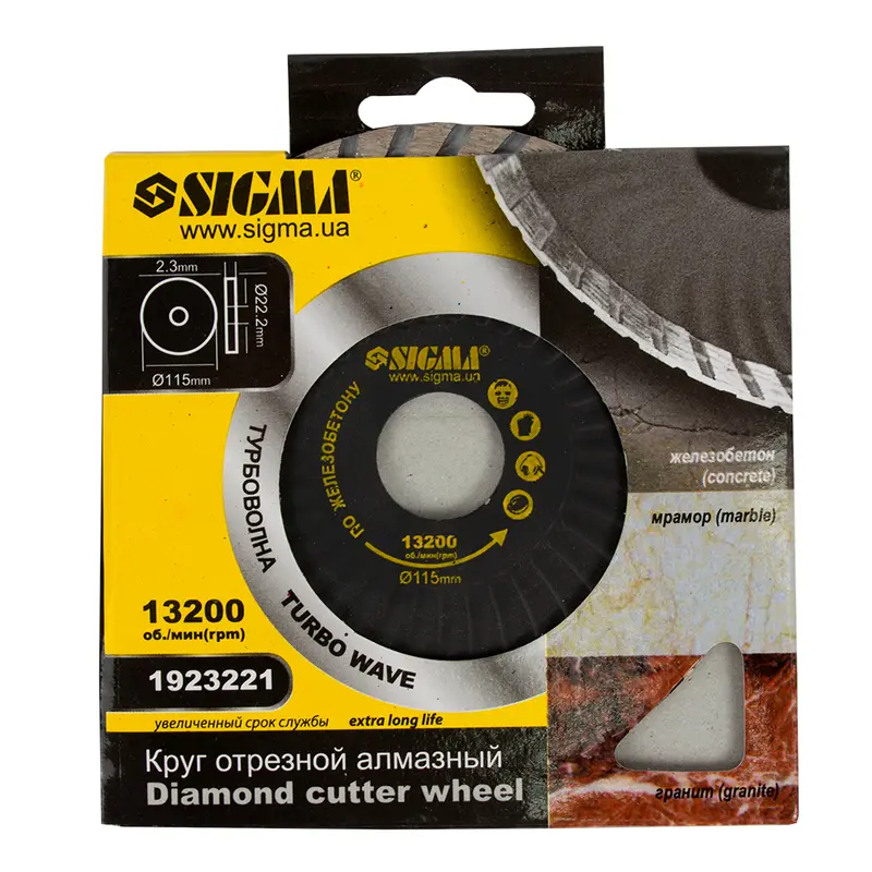 Круг алмазний по залізобетону "Турбоволна" Ø115×2.6×22.2мм, 13200об/хв SIGMA (1923221)