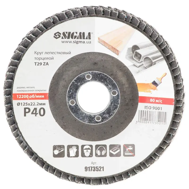 Круг пелюстковий торцевий Т29 (конічний) ZA Ø125мм P40 SIGMA (9173521)