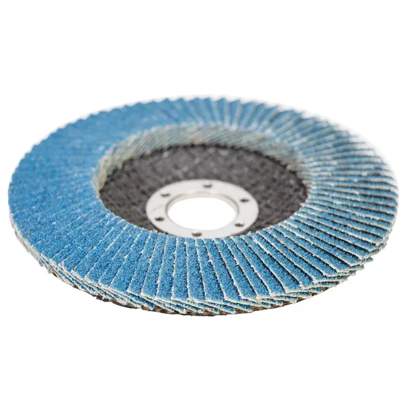 Круг пелюстковий торцевий Т29 (конічний) ZA Ø125мм P80 SIGMA (9173541) призначений для плоского шліфування, обробки кромок зварних швів деталей і конструкцій з різних марок сталей, кольорових металів і деревини. Електростатичний спосіб нанесення рівномірно розподіляє абразив по всій робочій поверхні пелюсткового круга, що забезпечує однорідність поверхні обробки. Матеріал абразиву - цирконієвий електрокорунд (ZA; 38А). Відрізняється від оксиду алюмінію тим, що має ефект самозаточування - під час роботи в результаті відколювання робочих частинок микрокристаллической структури цирконієвого електрокорунду, з'являються нові гострі кромки.