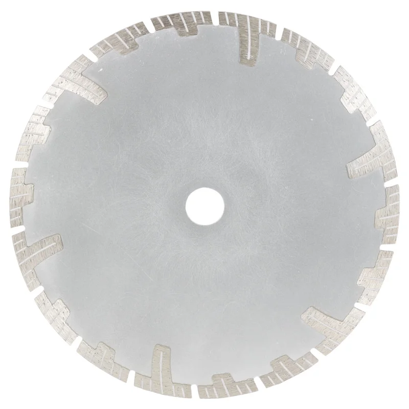Завдяки оригінальній турбо-сегментній форми ріжучої кромки, круг активно охолоджується в процесі роботи і не вимагає обов'язкової подачі води. Забезпечує більш глибокий та плавний різ у порівнянні зі стандартними сегментованими кругами. Т-зуб служить для можливого підшліфування бетонних напливів, забезпечує захист ріжучого шару від бічного зносу.