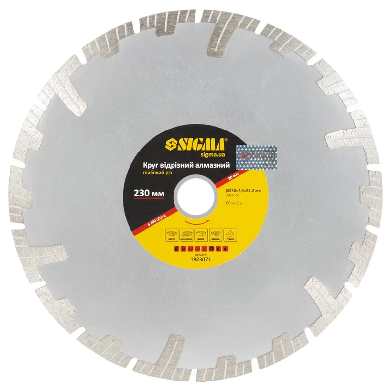 Круг відрізний алмазний Глибокий різ Ø230×22.2мм SIGMA (1923071)