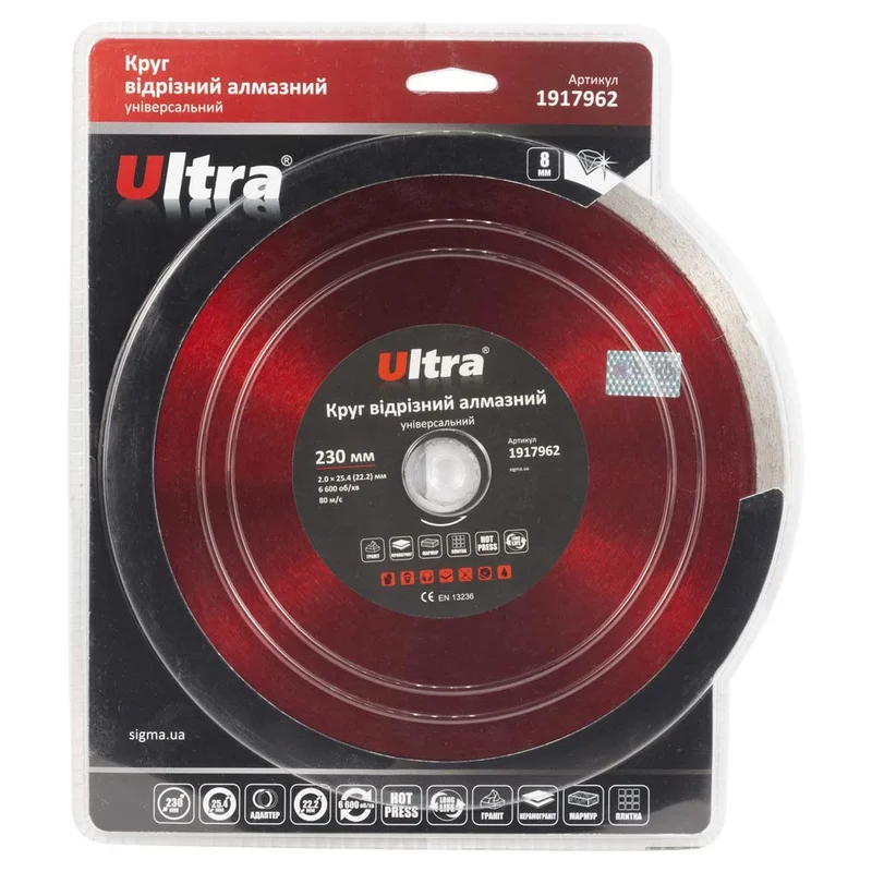 Круг відрізний алмазний універсальний Ø230××25.4 (22.2)мм ULTRA (1917962)