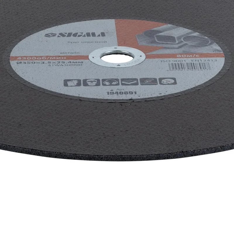 Круг відрізний по металу Ø350×3.5×25.4мм SIGMA (1940891) призначений для різання виробів з металу, роботи з кузовний сталлю і іншими аналогічними матеріалами.